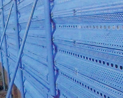 防风抑尘网采用金属原材料经机械组合模具冲孔、压制、喷塑而成,具有强度高、韧性好、抗弯曲、抗老化、抗阻燃、耐高低温、耐酸碱、承受弯曲变形能力强等优良性能;经过特殊配方和工艺制作,我公司可根据用户需要制成各种厚度、颜色,具有使用寿命长、色彩鲜艳不易褪色等特点;综合抑尘效果良好,优于国内外同类产品。